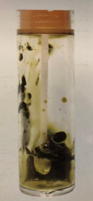 Die folgenden Tage hatte mein Vater kein gutes Gefühl, schlief schlecht und schaute täglich 2-3 mal nach seinem kleinen Patienten. =>Fünf Tage später zeigte ihm der pädiatrische Assistenzarzt eine Windel, die spärlich grün-bräunlich aussah (Abb. 4).