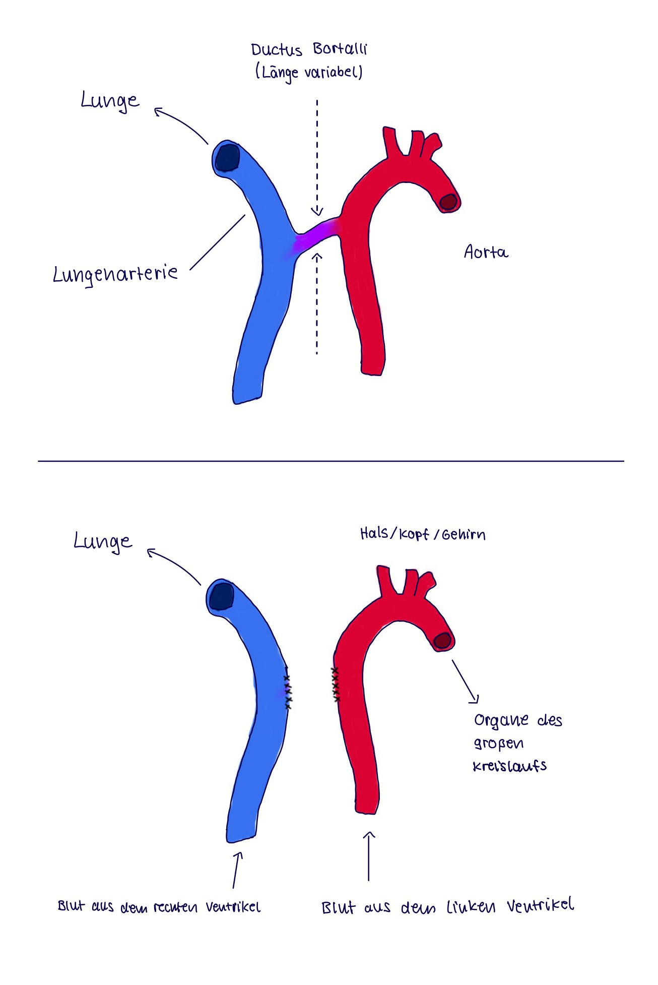 = Arterie, die sauerstoffarmes Blut aus der rechten Herzkammer = dem Ventrikel, in die Lunge führt. Wenn sich die embryonalen Umgehungskreisläufe des Ductus Botalli und des Truncus arteriosus (siehe dort) schließen, wird das sauerstoffarme Blut in die Lunge gepumpt.