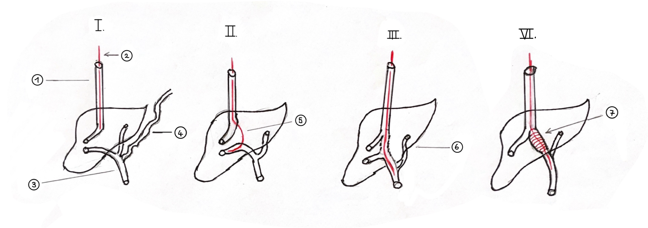 Da nun viel Pfortaderblut über die Milzvene und den Stamm der Pfortader zur Leber transportiert wird, will er diesen Zustrom verhindern, weil er weiß, dass das Blut in die Venen der Speiseröhre gestaut wird. Sinnvoll ist dann, dass er das Blut, das über die Milzvene transportiert wird, umleitet. Er kann es zur benachbarten linken Nierenvene umleiten, die es dann ins Herz drainiert. Diese Umleitung nennt man einen Spleno-Renalen-Shunt. Um einen solchen Shunt herstellen zu können muss man die Milzvene quer durchtrennen, zur Nierenvene schwenken und seitlich in die Nierenvene einleiten = anastomosieren. Die Erfolge sind sehr gut.
